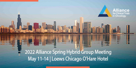 Our 2022 Alliance Spring Hybrid Group Meeting will convene May 11-14 in Chicago, IL. The four-day meeting will showcase novel and innovative cancer control, prevention, and treatment trials conducted by investigators through a multidisciplinary academic and community research network, as part of the NCI National Clinical Trials Network (NCTN) and Community Oncology Research Program (NCORP). More than 75 disease, modality, administrative and special sessions led by distinguished oncology researchers and clinical trial specialists from across the country are scheduled.